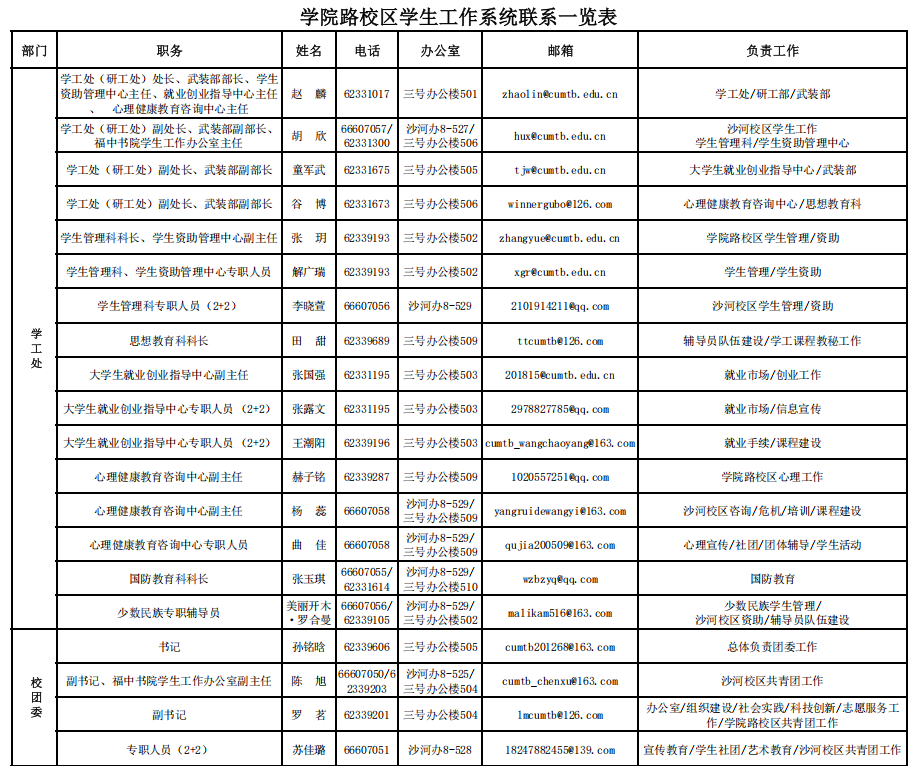 副处长 童军武:学工处(研工处)副处长、武装部副部长。