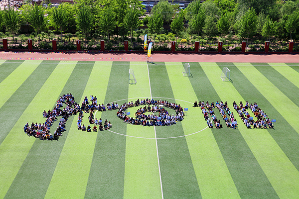 比赛开始前,全体参赛队员组成了校庆logo图案,并一起为学校110周岁生日祝福。