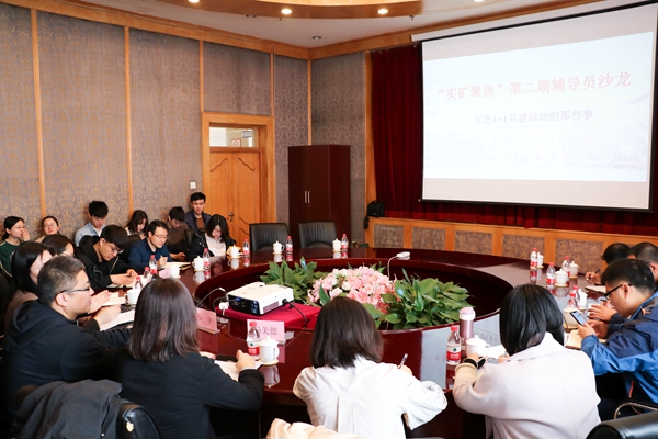 为进一步强化我校党支部红色“1+1”共建活动质量,3月20日上午,学生工作处在交流中心201会议室举办了以“红色‘1+1’共建活动的那些事”为主题的第二期“实矿聚焦”辅导员沙龙活动。学生工作处处长安宇,各学院专兼职辅导员及学工处人员近40人参加了活动。