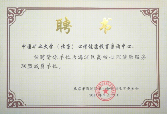 5月25日,海淀区高校心理健康服务联盟正式成立,共有七所高校心理健康教教育中心为联盟成员单位,我校为其中之一。
