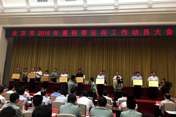 8月4日,北京市2016年夏秋季征兵工作动员大会在北京市委大楼报告厅召开。会议表彰了2015年征兵工作先进单位并全面部署2016年征兵工作。我校与北京科技大学、北京化工大学等20所高校被评为北京市2015年征兵工作先进单位。这也是我校第二次获此荣誉。校党委副书记朱书全代表学校上台接受表彰。