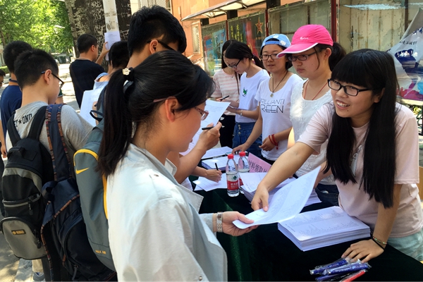 6月15日中午,由学生资助管理中心主办的英语四六级考前加油站——“以诚引航,用心承诺”2016年诚信教育月开幕活动在学校篮球场西侧顺利举行。文法学院英语系教师王振英、古明,学生工作处副处长、学生资助管理中心主任白云鹤、学生资助管理中心工作人员,各学院辅导员及近300名学生参加了本次活动。