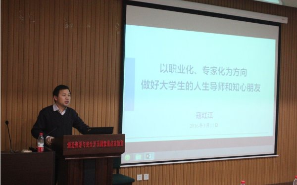 寇红江紧密结合教育部关于辅导员建设的文件要求,从职业化专业化的背景和价值、基础和条件以及路径和方法这三方面详细阐述了辅导员为什么、有什么以及怎么做才能够职业化专业化。在鼓励辅导员实现职业化专业化的道路上,他提出“五个要求”即:不断坚定理想信念、不断提高理论水品、不断提升实践能力、不断深化研究造诣、不断强化总结创新。他希望辅导员们要以职业化专业化为方向,做好大学生的人生导师和知心朋友。