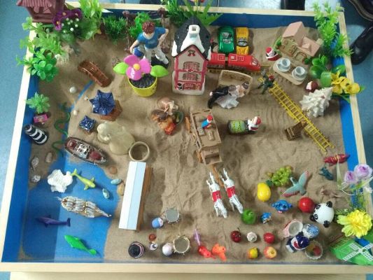 活动以“热身-构建团体沙盘-分享展示沙盘-分析解读沙盘”为基本构架,轻松的热身活动创设了良好的团体氛围,随后11名同学通过8轮的摆放体验了一场完整的团体沙盘,并在每一轮次做了详细的文字和照片记录;然后大家围坐在作品周围,分享每一轮次自己摆放的意图和感受;最后田老师从专业的角度对沙盘做了一些解释,让大家更加了解彼此的意图,加深了认识。