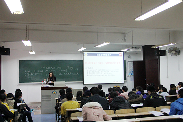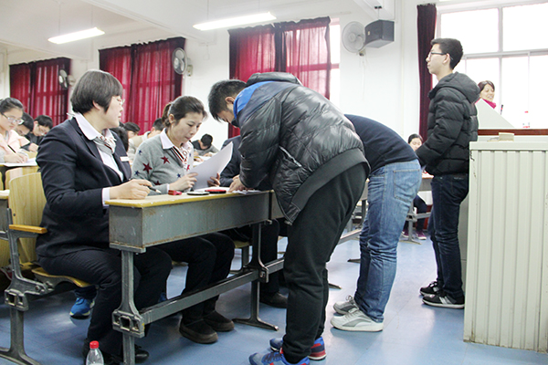 张玥介绍了我校国家助学贷款总体进展情况,中国银行审批国家助学贷款的程序,带领下学生们逐表逐行填写相关内容,对学生存在的疑问一一作答,并进行了现场面签。