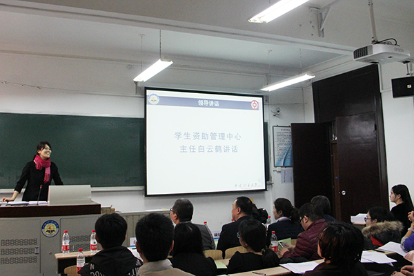 学生工作处副处长白云鹤介绍了学校的各项资助政策、贷款的办理流程及还款方式,并调诚信是一种道德要求,是立身立命,立人立志的根本,是社会赖以生存和发展的基石,希望同学们厚积薄发,经过大学的学习生活都能够磨练成长为宽厚仁慈品德好,专业技术能力强的社会人。