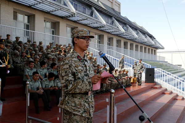 地测学院陈慧诚代表全体受训学生发言。他表示,12天的军训生活就要结束了,我们从中得到了锻炼,实现了成长。今后我们将充满自信,继续努力,勇敢面对接下来的学习和生活。