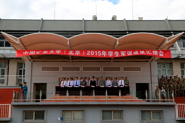 秋风习习,国歌嘹亮。9月11日上午,中国矿业大学(北京)2015年本科生军训成果汇报会在田径场隆重举行。校长杨仁树,副校长孙继平、范迅、姜耀东、王忠强,校党委副书记朱书全,校党委副书记、纪委书记张志坤,承训部队、各学院及相关部门的负责同志出席大会。大会由朱书全主持。