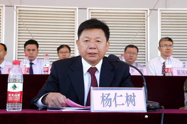 最后,杨仁树发表讲话。他首先代表学校领导向承训部队的教官们表达了崇高敬意和衷心感谢,是他们让学生们强健了体魄,磨练了意志,培养了团结协作的精神,更对“保家卫国”有了深刻的理解。同学们在烈日和雨水的双重考验下认真学习军事技能,用坚定的意志战胜了疲惫和炎热,为自己的军训生涯交上一份满意的答卷。他为同学们感到骄傲和自豪。同时,他希望同学们继承和发扬已养成的良好习惯和优良作风,以饱满的热情投入到今后的学习中去,多读书、读好书;铭记军人的爱国之情和报国之志,学习他们忠于党、忠于祖国、忠于人民的爱国主义精神和无私奉献精神。