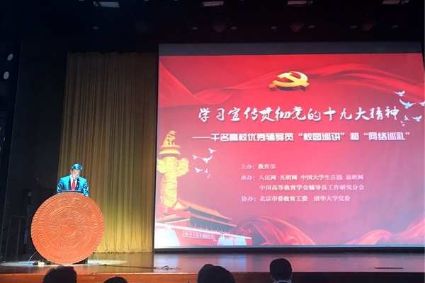 11月22日,由教育部主办的“学习宣传贯彻党的十九大精神——千名高校优秀辅导员‘校园巡讲’和‘网络巡礼’”活动在清华大学举办首场报告会。我校党委学生工作部、校团委负责人,辅导员、学生党员共50人参加了报告会。