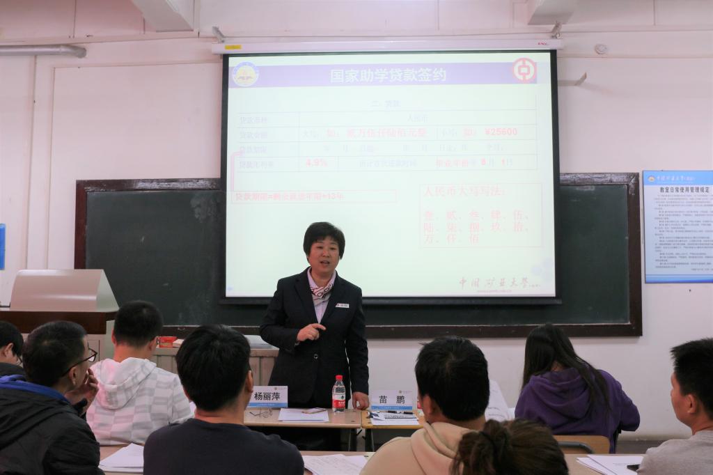 会上,杨丽萍经理介绍了银行审批国家助学贷款的程序,同时向同学们分析并强调了诚信贷款的重要性。杨经理表示,中国银行将继续努力做好助学贷款工作,为矿大学生提供优质的服务。
