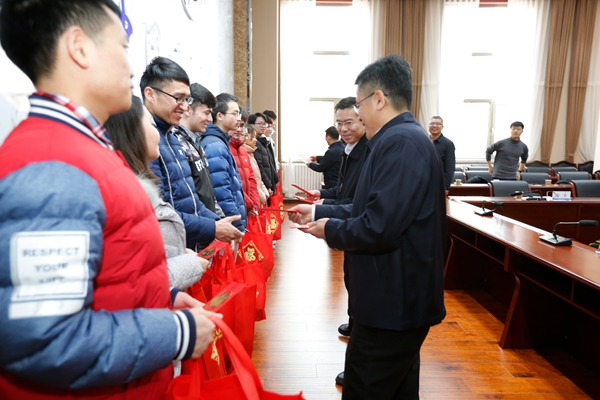 与会领导为同学们发放了新年礼包和慰问金并合影留念,送上了最诚挚的新春祝福。