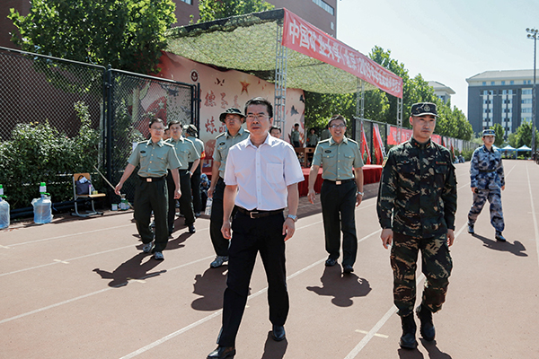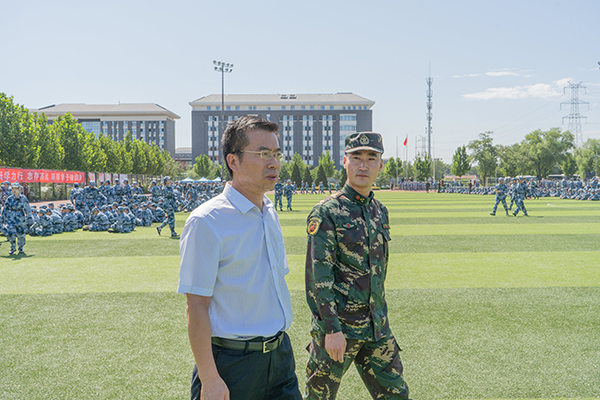 8月23日上午,军训开训仪式结束后,校党委副书记王忠强来到沙河校区运动场检查军训工作并慰问了指导员、参训教官和参训学生,校党委武装部部长安宇、副部长童军武及各学院主管学生工作负责人等陪同视察。