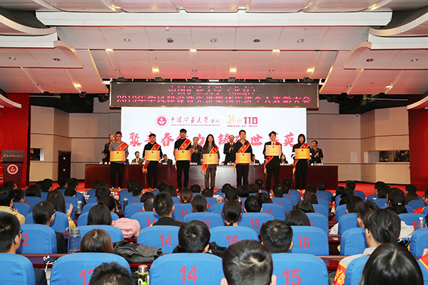 大会在庄严的国歌声中拉开帷幕。董晞宣读了2018年北京市十佳示范班集体、北京市示范学生基层组织;2018—2019学年校级优良学风标兵班、优良学风班、优良学风标兵宿舍、优良学风宿舍;第十一届高校辅导员年度人物入围奖;2018-2019学年校级优秀辅导员、优秀班主任表彰名单。王家臣宣读了经教育部批复的2017-2018学年本科生国家奖学金、国家励志奖学金,2018-2019学年董事会奖学金、孙越崎奖学金、金诚信励志奖学金表彰名单。刘波宣读了2018-2019学年校级优秀本科生、研究生优秀学生表彰名单。