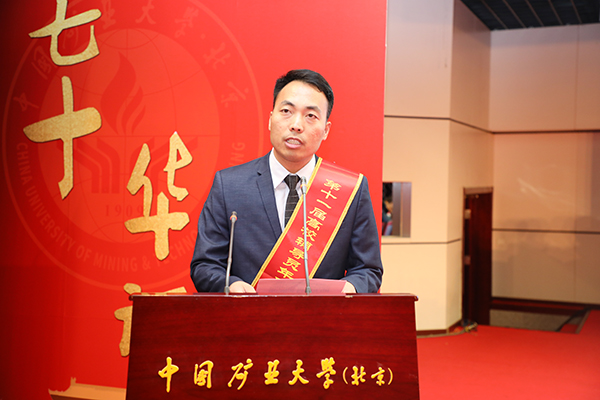 葛世荣发表了题为“聚青春伟力·铸‘矿’世菁英——庆七十华诞·迎百十校庆”的讲话。他首先代表学校党委和行政,代表徐孝民书记,向辛苦耕耘在教学一线的广大教师和辛勤工作在学生工作战线的全体同志表示衷心感谢,向取得优异成绩的先进集体和先进个人表示热烈祝贺。