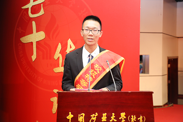 获奖学生代表、安全学院马翰超告诉同学们,比起作息严格的初、高中,大学的学习环境更为自由,需要同学们能严格自律,抵住外界纷繁复杂环境的诱惑。优良学风标兵班代表、地测学院水文2016-1班孙晨向同学们分享了班级在学风建设、思想建设、科技创新、团日活动等方面的经验,并倡议作为新时代的青年接班人,同学们必须坚定理想信念,践行初心使命,勇挑历史重担,为民族复兴铺路架桥,为祖国建设添砖加瓦,同心共筑中国梦,续写新的辉煌。