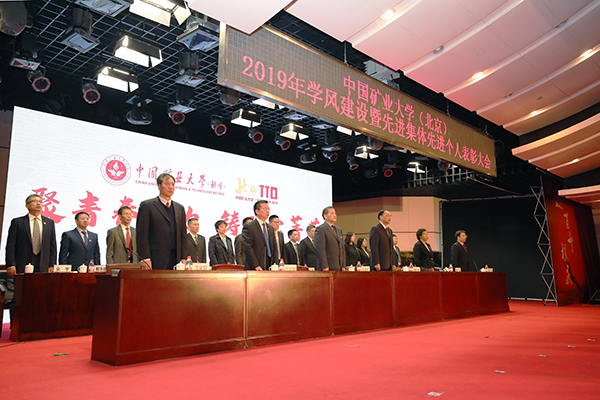 10月15日下午,学校在科技会堂四层报告厅举行2019年学风建设暨先进集体先进个人表彰大会,对在2018-2019学年度学风建设中表现突出的先进集体和先进个人进行表彰。校党委书记徐孝民,校长、校党委副书记葛世荣,校党委副书记王忠强,校党委副书记、纪委书记董晞,副校长王家臣、刘波出席大会并在主席台就坐。各学院、党政机关部门负责人,各类先进集体、先进个人获奖代表共900余名师生参加了大会。大会由王忠强主持。