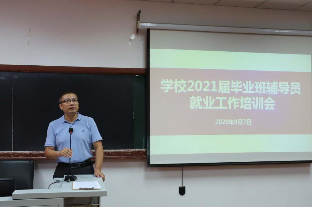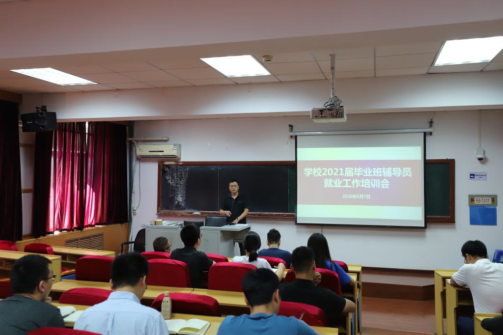 为全面启动学校2021届毕业生就业工作,9月7日下午,在理化楼306室组织召开了学校2021届毕业班辅导员就业工作培训会。学工处处长安宇、大学生就业创业指导中心工作人员以及2021届全体毕业班辅导员参加了本次培训。培训会由学工处副处长童军武主持。