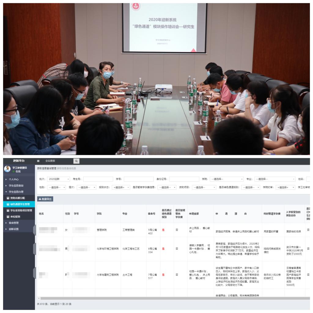 无纸办公,业务办理不拥挤。结合当前新冠肺炎疫情防控要求,学校积极响应全国学生资助管理中心要求,打破常规化工作思路,上线中国矿业大学(北京)智慧迎新系统,推行无纸化办公,采用非接触、网上办理方式,简化学生“绿色通道”工作流程。家庭经济困难新生入校前就可以在线上提交“绿色通道”申请,不需要在线下排队、拥挤,切实解决了因人员聚集所带来的学校疫情防控风险。