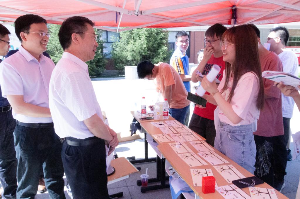 5月29日下午,校党委副书记王忠强在学生工作处处长安宇、副处长童军武等人陪同下莅临活动现场详细了解和参观了整个生涯体验日活动,仔细询问了各个关卡活动内容和活动意义,表达了对该活动引导大学生早日树立求职意识和求职准备的关切,并现场与同学们亲切交谈。他在与同学们交谈中,希望同学们通过此次系列生涯体验活动,能够深入了解自我、认真思考,早做自身学业规划和职业生涯规划,在大学四年当中踏踏实实、稳稳当当地提升自身素质和技能水平,积极树立正确的就业观、择业观。