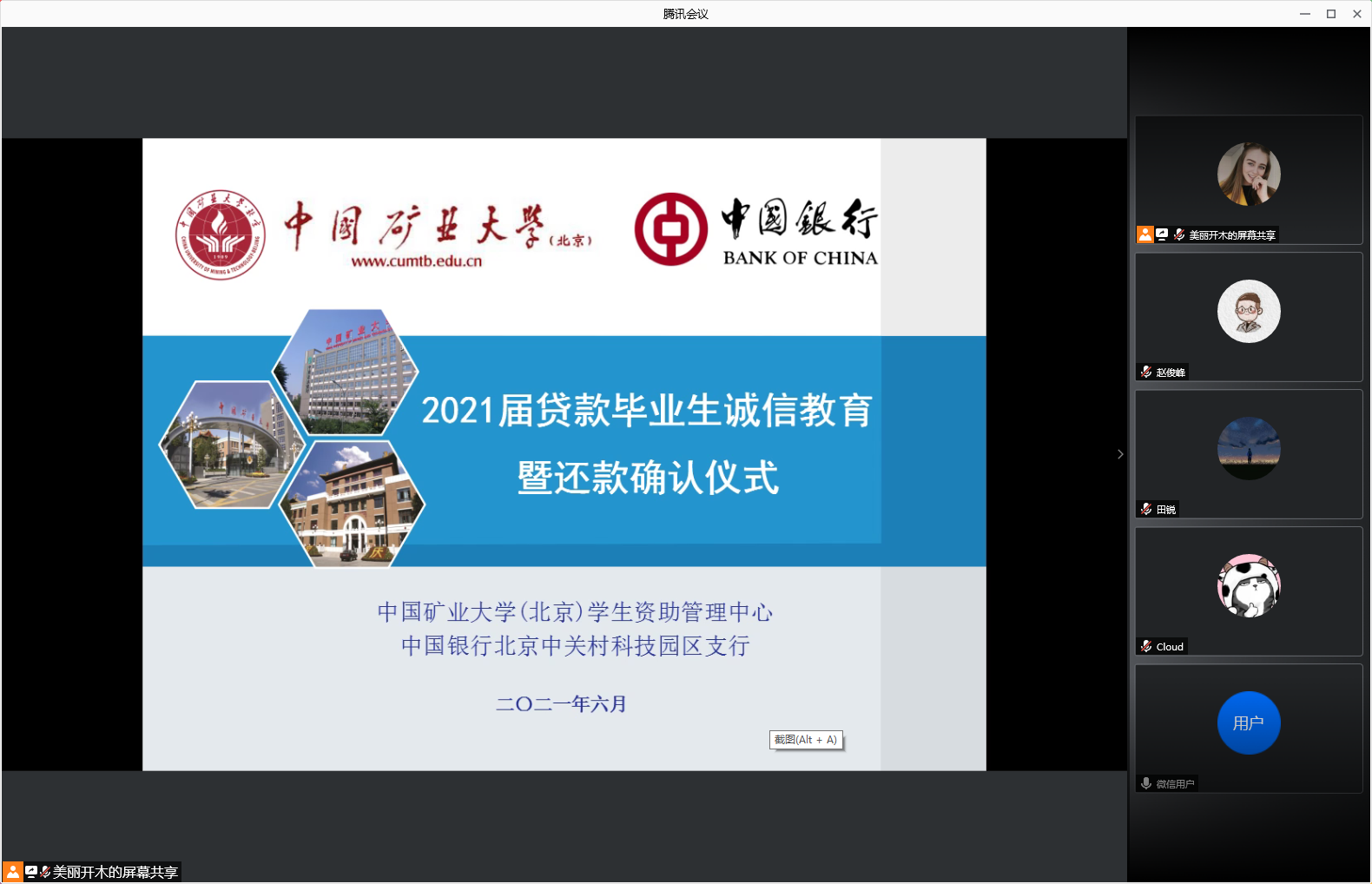 6月4日上午,学校举行2021届校园地国家助学贷款毕业生诚信教育暨还款确认仪式,仪式通过腾讯会议线上召开。中国银行贷款工作人员、学生资助管理中心工作人员以及各学院毕业生辅导员,40余名名办理校园地国家助学贷款的毕业生参加了会议。