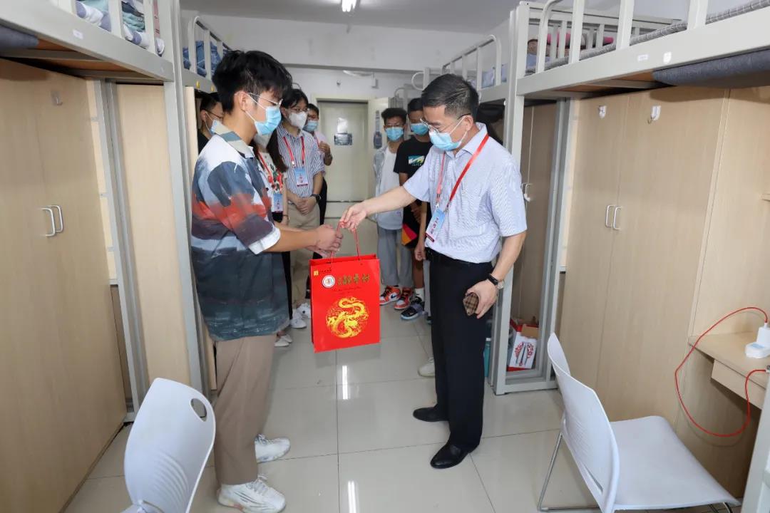 高度重视,领导关怀暖人心。学校高度重视“绿色通道”工作,召开专题会议对相关工作进行部署,确保各项工作的顺利开展。新生报到当天,校党委副书记王忠强带领相关部门负责人深入各宿舍看望学生,慰问了家庭经济困难,少数民族及高校、地方专项计划等新生代表,了解他们的报到情况和对学校新环境的适应情况。王忠强向同学们分别寄语,嘱咐大家要充分利用大学的学习机会,珍惜大学时光,不负家长嘱托,努力学习知识,四年后成为社会的栋梁。王忠强还鼓励家庭经济困难学生要敢于面对困难,自强自立,大学期间可以通过学校的各种资助顺利完成大学学业。最后他还表示,宿舍成员间生活上要互帮相助,学习上要比学赶超,互相学习、共同进步。慰问期间,王忠强给同学们送去了北京稻香村甜点等慰问品,表达了学校对新生的关心和慰问。