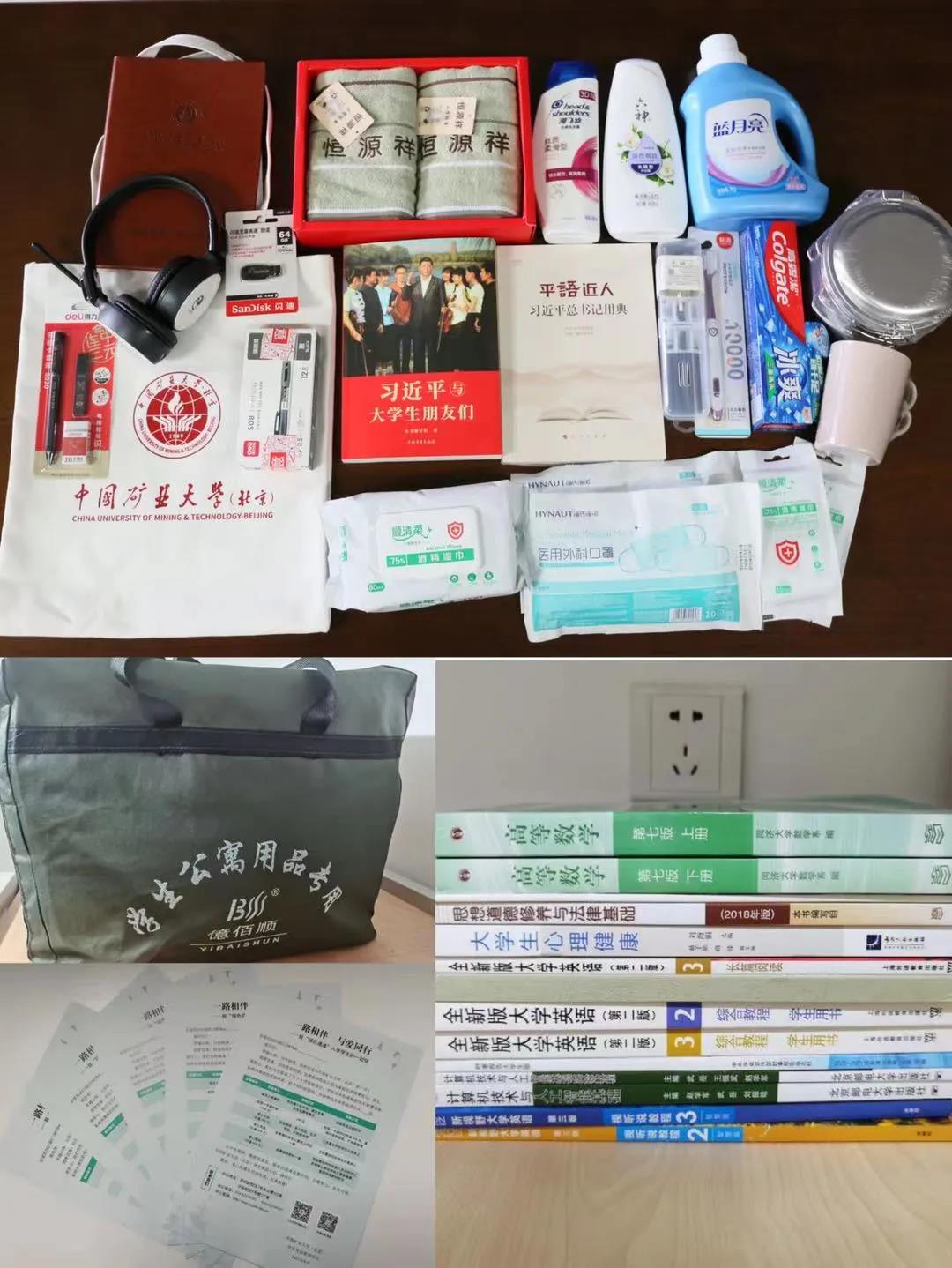 资助升级,多项资助齐助力。学校及时了解学生需求,精心筹划各种资助项目,新生入学资助项目相较于往年更加丰富,主要包括: 1.防疫物资:医用一次性口罩、医用酒精消毒湿巾;2.学习用品:矿大帆布包、U盘、英语听力耳机、签字笔、铅笔套装、笔记本;3.生活用品:整理箱、餐盒、餐具、毛巾、洗发水、洗衣液、沐浴露、牙膏、牙刷、漱口杯;(4)引航图书:《习近平与大学生朋友们》《平语近人——习近平总书记用典》。