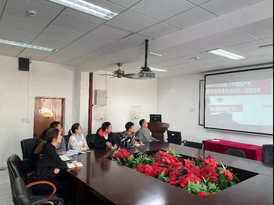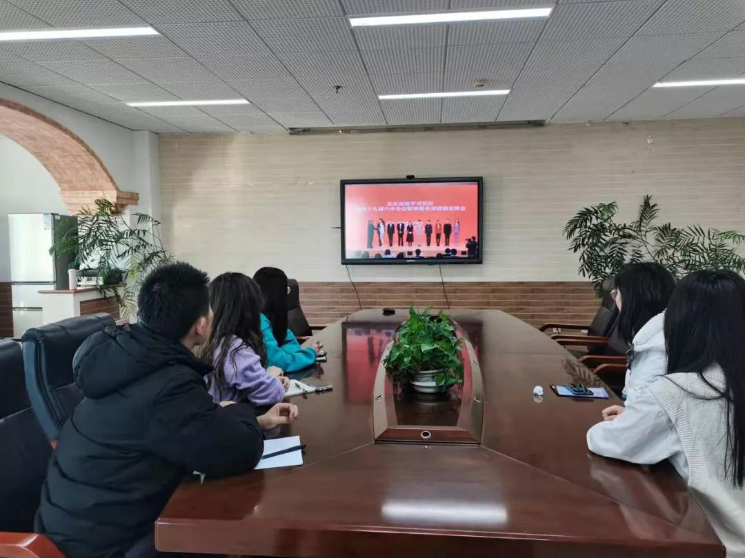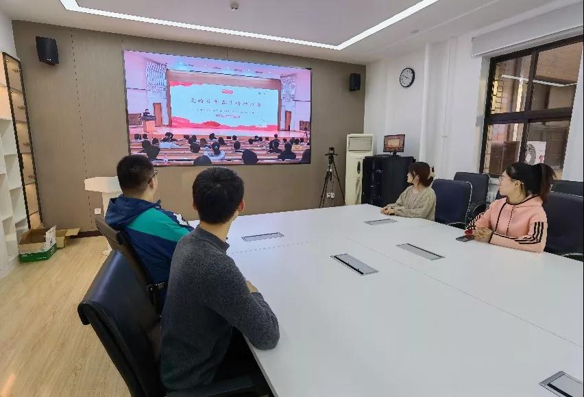 马克思主义学院在逸夫楼1217设置分会场,组织辅导员和学生党员在线观看学习。