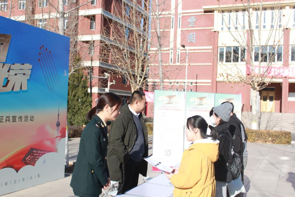 为做好2022年春季征兵工作,武装部于12月7日和8日分别在沙河校区、学院路校区举办了校园征兵宣传咨询、征兵政策宣讲、参军报名学生见面会等系列活动。党委武装部部长安宇、副部长童军武以及各学院的500余名学生参加此次活动。