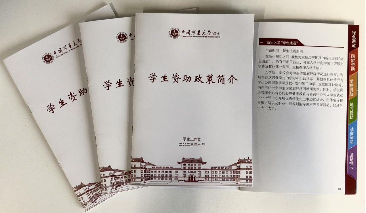 工作前移,资助政策进家门。为尽早发现学生问题、解除学生后顾之忧,学校多措并举,让学生充分了解国家资助政策、提前感受到学校的大家庭的温暖,安心准备、按时入学。第一,提前启动暑期新生资助相关工作,随新生录取通知书邮寄了《中国矿业大学(北京)学生资助政策简介》手册及《中国矿业大学(北京)家庭经济困难学生认定申请表》,保障每位新生及家长应知尽知资助政策;第二,假期开通2部资助热线电话,全方位为新生及家长答疑解惑,暑期期间共接到163余通咨询热线;第三,通过学校网页、官方微信、迎新系统等多种媒介宣传资助政策,详细介绍学校的资助项目、资助流程,打消家庭经济困难新生的顾虑。