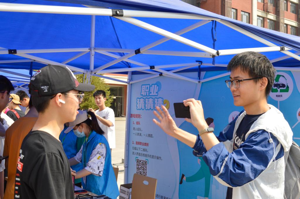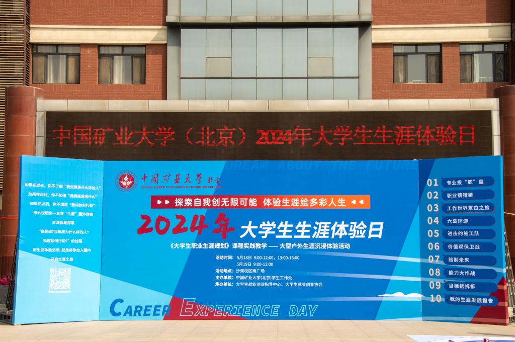 为夯实大学生职业生涯规划教育,唤醒大学生生涯规划意识,助力学生掌握自我认知、职业认知、生涯决策等方面的知识技能,提高职业规划能力和就业竞争力,以提升学生职业规划能力促就业,结合《大学生职业生涯规划》课程实践教学安排,5月18日至19日上午,我校在沙河校区南广场举办了2024年大学生生涯体验日活动,活动由学生工作处主办,大学生就业创业指导中心和大学生就业创业协会承办,学校全体2023级本科生以及500余名其他年级学生参加了此次活动。