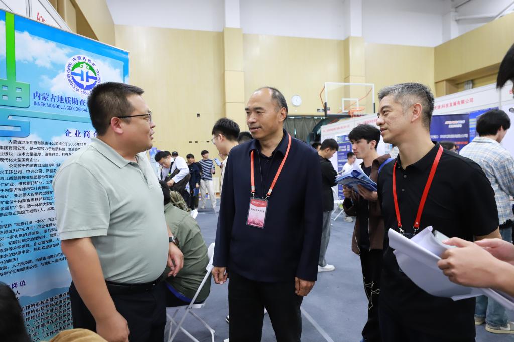乔红兵首先来到“就业指导 简历诊断”区域展位前驻足,深入了解为毕业生们提供一对一职业规划、简历诊断等就业服务情况,并先后与北京住总集团有限责任公司、中铁十一局集团有限公司、内蒙古地质勘查有限责任公司、内蒙古汇能煤电集团有限公司等多家用人单位招聘负责人进行交流,对参会单位来校招聘表示感谢,听取了用人单位对我校人才培养的意见建议,深入了解了行业、企业发展态势,表示学校将不断提高人才培养质量,更好满足用人单位需求,也希望用人单位常来校交流,建立长期全面合作关系,为毕业生提供更多优质岗位。同时鼓励毕业生积极求职应聘,学校也将持续为毕业生提供更多的就业指导和服务。