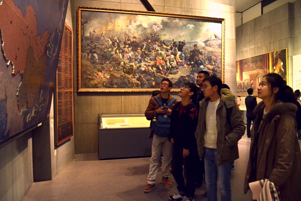 随后,同学们又参观了“领袖•人民——馆藏现代经典美术作品展”,以此展示中国革命和建设事业的光辉历程,展现领袖与人民的血肉关系。其中董希文创作的《开国大典》、石鲁创作的《转战陕北》、罗工柳创作的《地道战》、詹建俊创作的《狼牙山五壮士》等重要作品,在新中国美术史上占有重要地位,已成为公众熟知的时代经典。