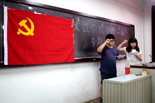 6月21日下午3点,文法学院在理化楼203室举办“两学一做”专题党课及党员宣誓仪式。