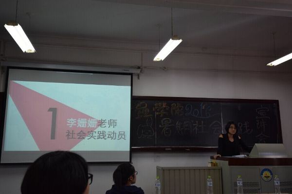 4月22日下午4点,理学院2016年暑期社会实践宣讲会于理化楼203举行。理学院团委书记李姗姗、地测学院团委副书记侯悦,受邀作为嘉宾出席。理学院2015级全体本科生参加本次宣讲会。大会由东紫薇主持。