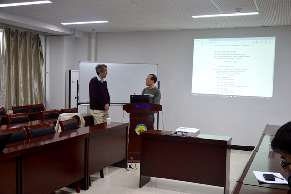4月19日,俄罗斯科学院院士Iskander Taimanov教授来我校理学院访问,为学校师生做了题为“The Moutard type transformations of two-dimensional Schrodinger and Dirac operators and their applications to soliton equations”的学术报告,并与理学院可积系统研究小组就学科前沿问题做了进一步的交流。