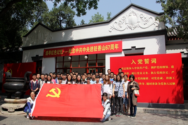 值此建党95周年来临之际,为缅怀革命先辈、铭记民族历史、激发学生爱国主义热情和增强其历史责任感,地测学院本科2013级党支部45名党员于5月8日前往香山双清别墅开展了主题为“追寻红色记忆,传承红色精神,争做时代先锋”的党日活动。活动主要分三个篇章进行: