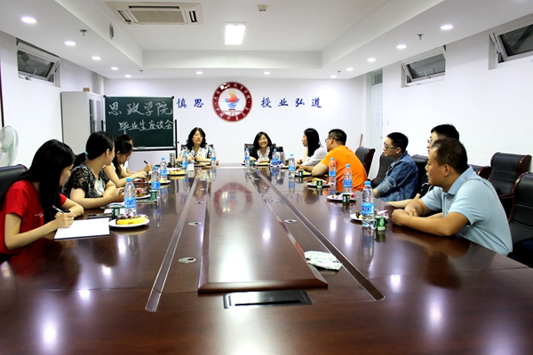 6月15日上午10点,思政学院在逸夫楼1217室举办了2016届毕业生座谈会,参加此次座谈会的有思政学院院长田霞、党总支书记李妍,辅导员、毕业班班主任以及2016届优秀毕业生代表。
