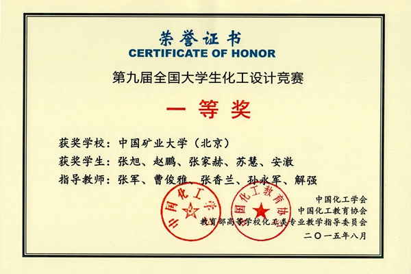 9月1日,第九届全国大学生化工设计竞赛结果公布。我校喜获佳绩,由张军、曹俊雅、张香兰、刘泽、解强、孙永军等指导的八支团队获奖。其中,由张旭、赵鹏、张家赫、苏慧、安澈组成的“疯狂一夏”团队荣获全国总决赛一等奖(华北赛区特等奖,最佳工艺设计奖),由谢建伟、芮雅峰、丁晓彤、焦亚茹、苏彤组成的“FMC”团队荣获全国二等奖(华北赛区一等奖),以严进明、齐峰、张述圭为队长的“烯炔元素”、“QHC”和“C-Five”三支团队获得全国三等奖(华北赛区二等奖),以杨靖东、吴湾、李志成为队长的“G-WXYZ”、“MOW”和“Secret”三支团队获得华北赛区三等奖。另外“环戊团”等八支团队获得了成功参赛证书。我校还获得华北赛区最佳组织奖。  2015“东华科技-三井化学杯”第九届全国大学生化工设计竞赛,吸引了清华大学、浙江大学、天津大学以及包括我校在内的256所高校1562支队伍报名参赛,最终238所高校的920支队伍完成了作品,成功参赛率为58.9%。我校今年是第五次组织学生参赛,在学校教务处的大力支持下,化环学院成立了以张香兰教授、张军副教授、曹俊雅副教授等为主的竞赛指导组,认真做好竞赛动员工作,共有17队85名同学报名参赛,最终16队成功提交了作品,成功参赛率达94.12%,参赛团队总数和成功参赛率均名列全国各高校前茅。 今年竞赛的题目是为某一大型综合化工企业设计一座采用清洁生产工艺制取乙二醇的分厂。“疯狂一夏”团队以“高效、节能、清洁、安全”为设计原则,通过查阅大量文献以及相关国家标准,与团队思路相契合,确定采用碳酸乙烯酯(EC)催化醇解、水解相调配的工艺,为某大型化工厂设计一年产30万吨乙二醇(EG)分厂。该项目有效解决了工业上成熟的环氧乙烷直接水合法耗水、耗能大的问题,同时缓解了国内开发的草酸酯加氢法产物EG质量不合格的问题,而且最大程度体现了清洁、安全生产的目标。工艺中使用了新型固载化离子液体催化剂,有效解决了工业上该工艺催化剂难回收的问题。此外,利用中国产能过剩的甲醇,合理利用二氧化碳(5.4万吨/年),缓解了煤化工市场压力以及全球温室效应。除主产30万吨EG外,副产重要化工原料碳酸二甲酯(DMC),实现了物料、能量的集成,丰富了一体化项目的产品结构,为下游聚酯涤纶企业提供重要原料。8月2-3日,在内蒙古工业大学举行的第九届全国大学生化工设计竞赛华北赛区决赛中,我校“疯狂一夏”团队努力拼搏、沉着应战,获得华北赛区特等奖、最佳工艺设计奖,并成功晋升由48支代表队参加的全国总决赛,这也使得我校成为五年来北京地区唯一一所连续五次晋升全国总决赛的高校。8月21-24日,在天津大学进行的全国总决赛中,“疯狂一夏”团队又以优异的成绩夺得全国一等奖。 全国大学生化工设计竞赛始于2007年,由中国化工学会、中国化工教育协会、教育部高等学校化工类专业教学指导委员会联合举办,旨在多方面培养大学生的创新思维和工程技能,培养团队协作精神,增强大学生的工程设计与实践能力,实践“卓越工程师教育培养计划”,是目前国内规模最大、影响最广的大学生专业性顶级赛事,实现了对大学生化工知识综合运用能力、化工设计软件的应用能力、自学能力和创新意识的全方位考查,是大学生充分展示创新能力的舞台。 化环学院认真贯彻学校构建能源工业精英教育教学体系的精神,以组织大学生参加化工设计竞赛为契机,深化教学改革,体现社会责任,把安全、环保、节能等理念作为化工设计的基本指导思想,将高水平的全国化工设计竞赛作为专业综合设计和创新教学环节成果展示的舞台。我校自2011年组织学生参加该赛事以来,报名学生逐年增加,参赛学生的专业也从化学工程与工艺和应用化学专业,扩展到矿物加工工程和环境工程专业,今年化工类专业参赛人数达73人,占专业学生总数的65%,获得三等奖及以上等级奖励的学生占化工专业总人数的33.04%,实现了以赛促建,全面提高本科生的工程设计水平和创新能力。 |