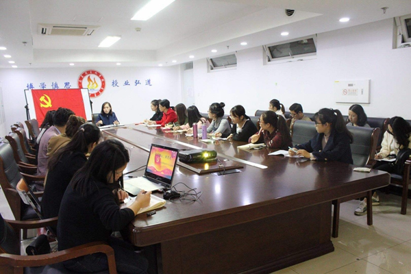 为认真学习并贯彻党的十九大精神,用十九大精神武装头脑,指导实践,推动工作,马克思主义学院思政硕党支部于10月19日晚上6:30在逸夫楼1217会议召开理论学习会议。在理论导师盖逸馨老师的指导下,思政硕党支部全体成员参加了本次会议,会议由党支部书记王超男主持。