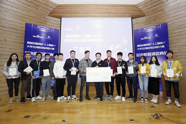 10月21日,由全国大学生创新创业实践联盟与百度公司联合主办的首届全国高校“人工智能+”大学生创新创业创造决赛在北京百度大厦举行。本届大赛吸引了300多支队伍近2000名学生参赛,覆盖55所“双一流”高校。经过初赛、复赛、暑期训练营等环节的激烈角逐,来自哈尔滨工业大学、厦门大学、武汉大学、华中科技大学、中国矿业大学(北京)等22所高校的32支队伍最终突围进入决赛。行业专家从作品的商业性、创新性、技术可行性等多方面评测,最终评出特等奖3项,一等奖5项,二等奖10项,三等奖14项。由我院控制科学与工程专业研究生、信息工程和计算机科学与技术专业本科生组成的学生团队共获得三等奖2项、创新奖1项,并获得2000元奖励。指导教师王振翀教授和杨克虎教授获得优秀指导教师称号。