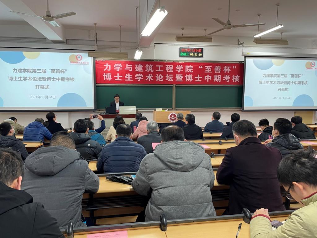 根据学校关于深化新时代研究生教育改革,全面提升创新人才培养质量的整体要求,力学与建筑工程学院近日举办了第三届“至善杯”博士生学术论坛暨博士研究生中期考核活动。11月24日上午,活动开幕式在教学楼114及腾讯会议室线上线下同步举行。