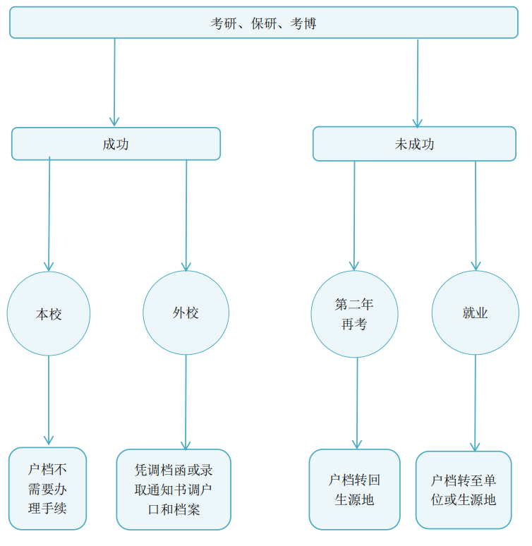 毕业去向为考研的学生,录取后提出不再攻读的,办理回生源省(直辖市、自治区)就业手续。