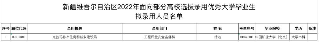 附件:新疆维吾尔自治区2022年度面向部分高校选拔录用优秀大学毕业生拟录用人员名单
