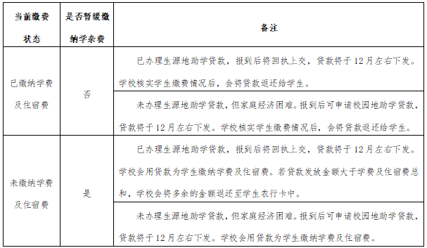 缓交入学费用:先办理入学手续,缓交学费及住宿费等费用。